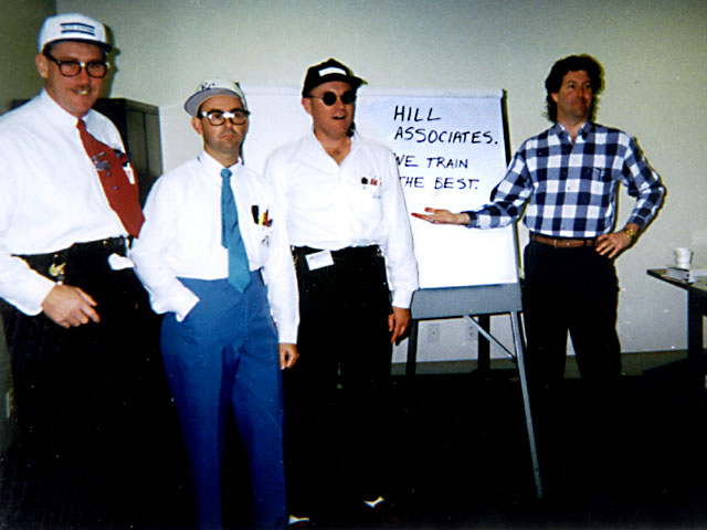 The sign says, “Hill Associates. We Train the Best.” The “geeks” were some of my students, playing the part.
