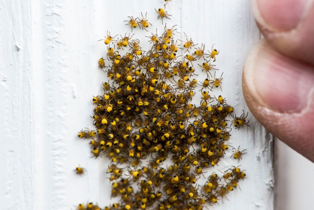 Cobwebs and sheet webs are everywhere—on the ground, between the deck rail balusters, connecting the post lights to the rails in great gossamer sheets of webbing, barely visible filaments waving in the air with spiderlings attached, tiny paratroopers on their telltales, off to colonize anything standing still, ballooning, kiting off. Contrary to the oft-stated belief that these were the webs found in corn cribs, cob comes from the Middle English coppe, meaning ‘spider.