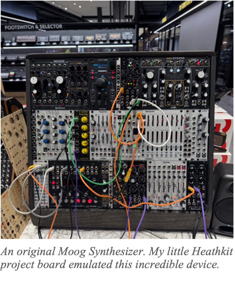 We loved electronics, and geology, and astronomy, and all the many offshoots of biology; we would often gather for electronic component swaps, or rock and mineral trades, or just to build things together or admire each other’s latest acquisitions of exotic reptiles or amphibians. At one point, my parents gave me a Heathkit electronics project board, pre-wired with capacitors and resistors and transistors and coils, each connected to little stainless-steel springs that allowed me to run jumpers between the components to wire the projects outlined in the manual. I will never forget the day I learned that by swapping between different components and by wiring the output to a variable resistor, I could make it play wildly oscillating sounds that would be great as the background music for a science fiction film. I had invented a version of the Moog Synthesizer, before anyone knew what that was.
