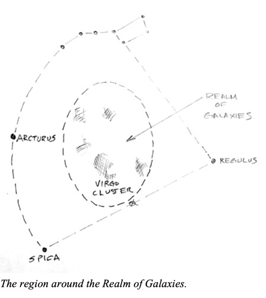 If you now draw a line between Spica and Regulus and look slightly above the midpoint of that line, you are staring at a region of space called the Realm of Galaxies.
