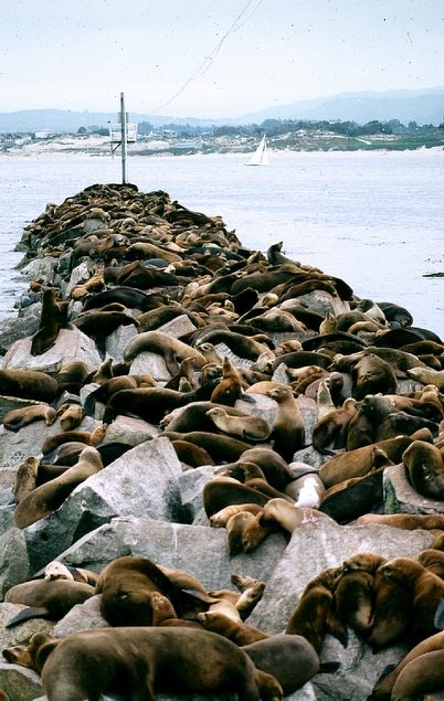 And, there were sounds—so many sounds. I once did a night dive at the far end of the Monterey Coast Guard Pier where a huge colony of seals and sea lions congregates. Divers know that if they turn on their powerful dive lights during a night dive, their vision goes from a dim awareness of everything around them to brilliant awareness of whatever is illuminated by that narrow white beam directly in front of them, drilling a hole into the darkness. Night divers also know that for reasons known only to them, sea lions enjoy barreling down the light beam toward the diver, blowing bubbles and roaring like a freight train—then veering off into the darkness at the last moment before colliding with the now terrified diver. It has happened to me more times than I can remember, and it still scares the hell out of me when it does.