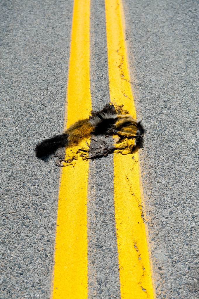 Apparently, it’s easier to just PAINT the roadkill than it is to move it.